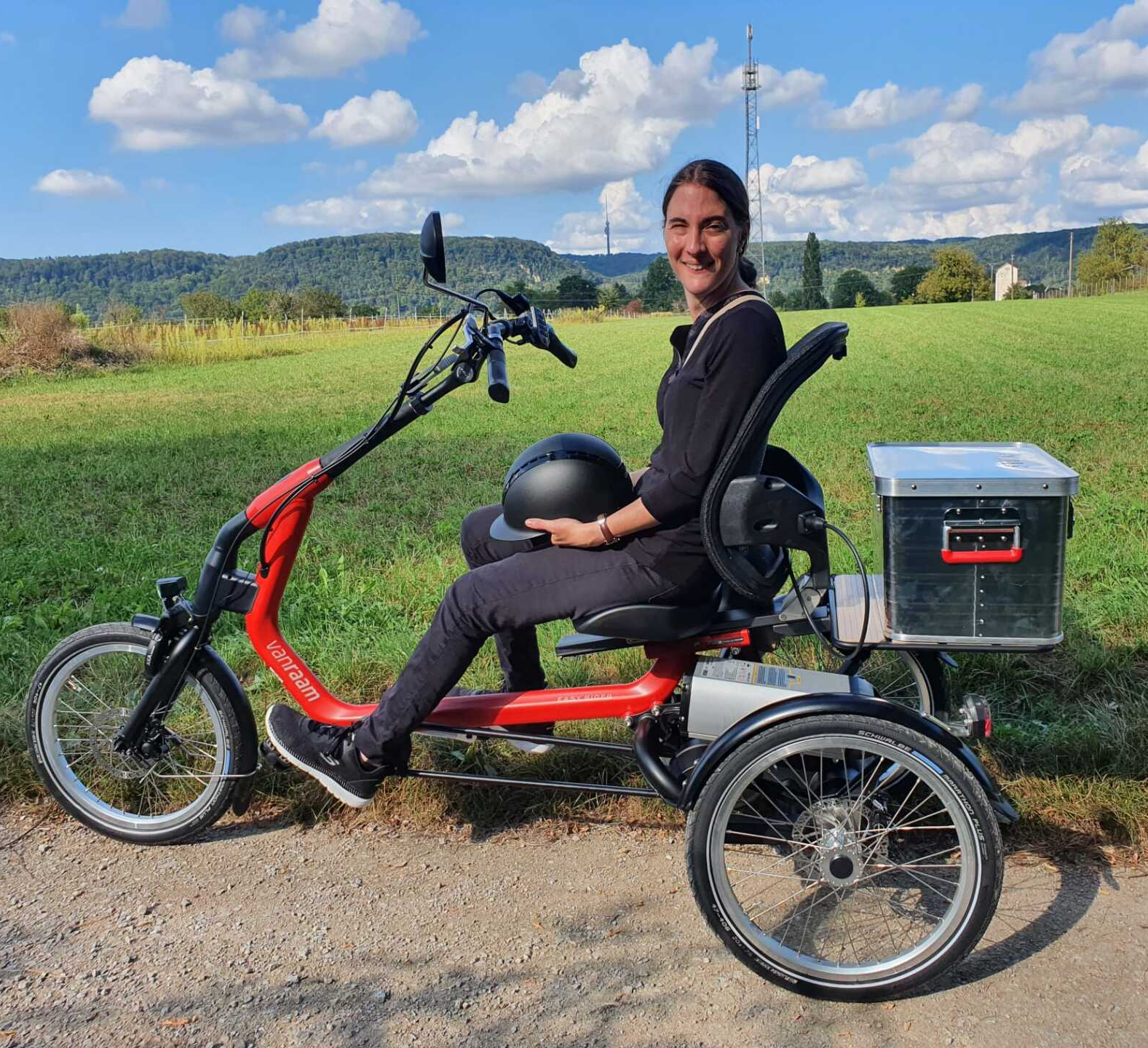 Diese hübsche junge Frau ist jetzt 28 Jahre alt. Sie war ein Frühchen und hat seit ihrer Geburt ein körperliches Handicap: Das rechte Auge ist blind, das linke Auge stark sehbeeinträchtigt. Zudem hat sie eine linksbetonte Tetraspastik in allen vier Gliedmaßen. Physiotherapeutin und Hausarzt empfehlen daher ein Dreirad. Aufgrund des hügeligen Wohnortes muss es mit Elektromotor ausgestattet sein. Die Krankenkasse hat den Antrag leider abgelehnt. Das therapeutisch wichtige und lebensqualitätsverbessernde Gefährt hat nun die Stiftung finanziert. Wir wünschen gute Trainingserfolge und allzeit gute Fahrt!