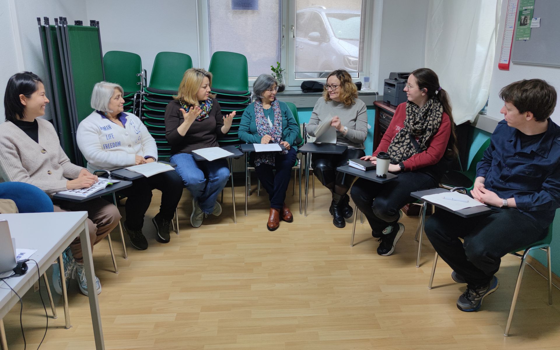 Shahrzad e.V. : Der Gehörlosenverein lehrt Migranten und Geflüchteten die deutsche Gebärdensprache, schafft Raum für neue Freundschaften und unterstützt im Alltag. Durch den Ukraine Krieg kam es zu vielen Anfragen, daher wurde eine platzsparende Bestuhlung gespendet um noch mehr Menschen einen Platz anbieten zu können.